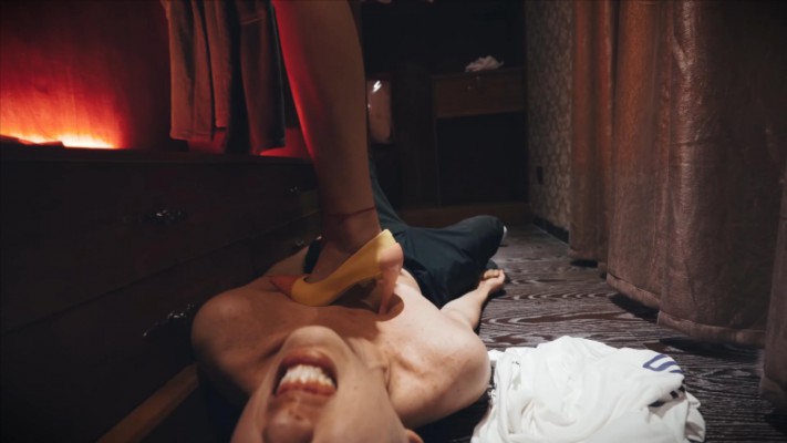 接着老板娘将他带到售鞋间,发现了他有很多银行卡,趁机会敲诈他一笔,要求他买下所有滞销的鞋,而且是抬高多倍的价格出售,并让他用肉身给自己试鞋...
