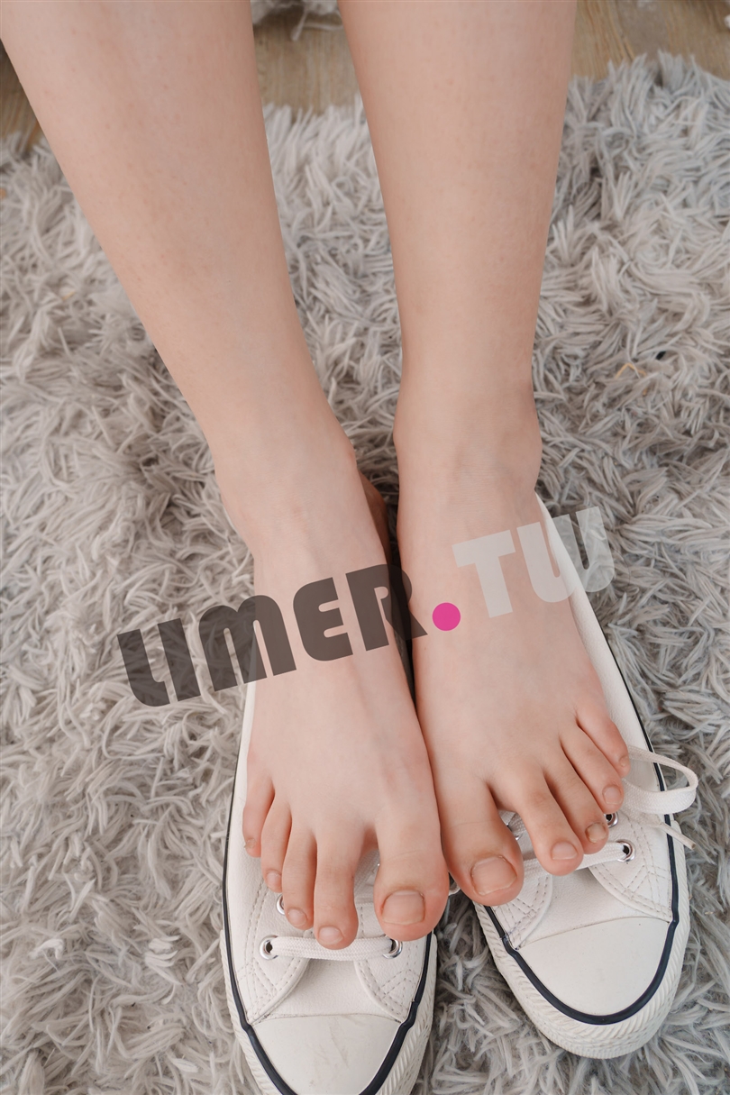 當她脫下鞋子時,一雙粉嫩的足部逐漸浮現。