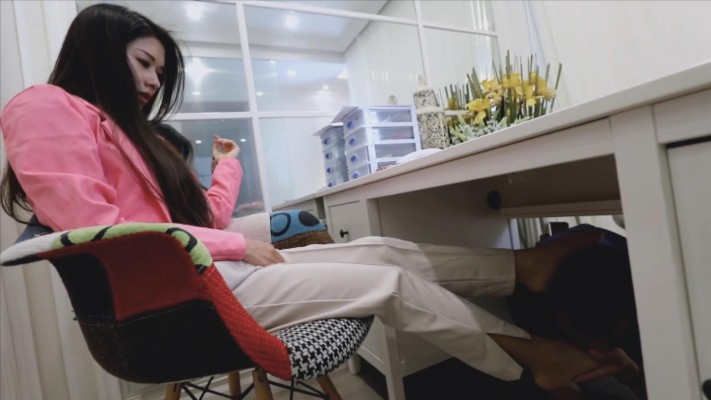 【内容简介】:芷晴上班路上不小心崴脚了,于是脱下鞋,拎着高跟鞋去上班。回办公室后穿着丝袜洗脚,之后发现下属在偷偷闻她的鞋,于是拿手机拍了下来。芷晴下班后把下属叫到办公室,将这件事告诉了他,威逼利诱下属给自己舔脚伺候。回家路上,接到了闺蜜的电话,闺蜜告诉了她一件事,她瞬间不淡定了......