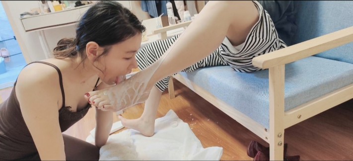 恋足 玉足喂食牛奶 喂食口水