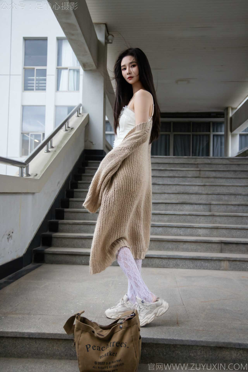 足愉心摄影第17期:模特南南(搭配:针织长衣、白色吊带、运动鞋、白色丝袜、裸足)
