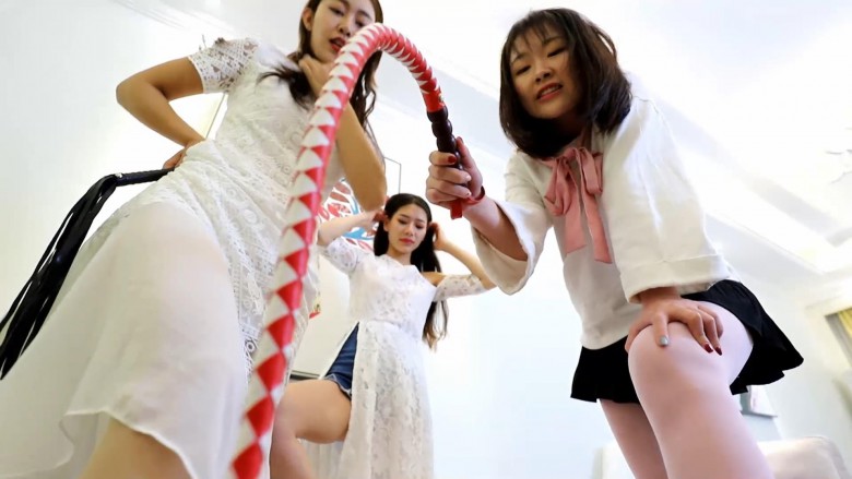 芷晴命令两个m抢着刁鞭子,也是偷偷的和另两位s说好,一人一脚把他们踢到亲在一起,太坏了!
