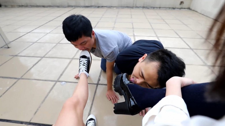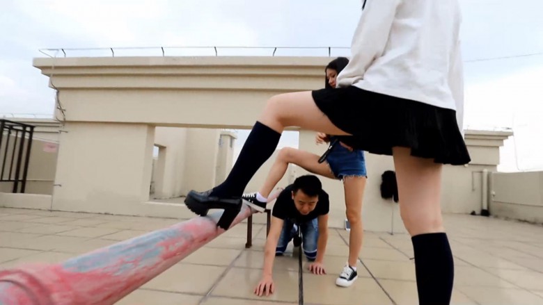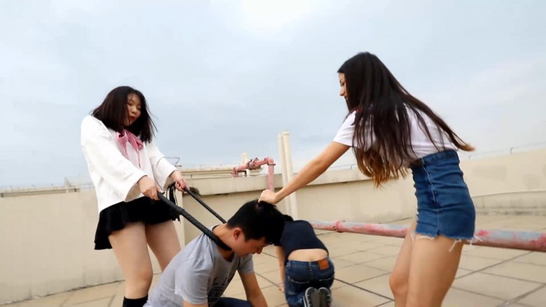 【内容简介】:采萱、芷晴在天台花式调教3个男奴。鞭子、耳光、羞辱钻跨、骑马遛狗、踢打、舔鞋等等。把两个m虐得受不了,后来发现一个在后面躲着看的m,也扯过来,踩得他满身鞋印....
