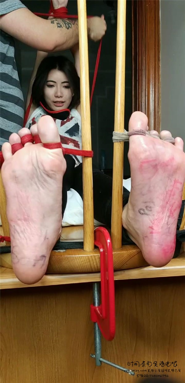 可可CoCo小姐姐捆绑堵嘴绑吊脚底写字,被抽鞭子,脚底疼到喊叫,首次被导演舔脚,心疼小姐姐2秒钟