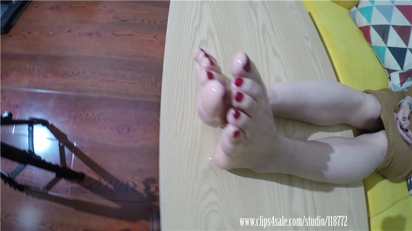【A&F】【双机位】大只美女脚底抹油红甲油美足脚底