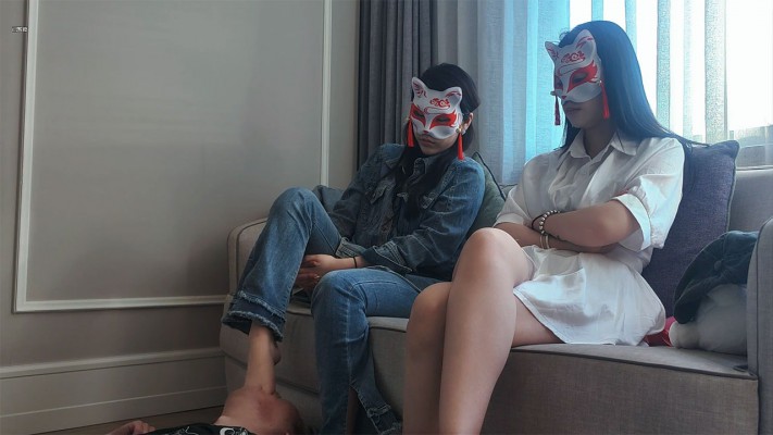 内容:女m战一柔舔女王的裸足,被脚深喉反复插嘴,之后女王教女m用同样的方式玩弄奴下奴,让奴下奴的舌头清理脚底。