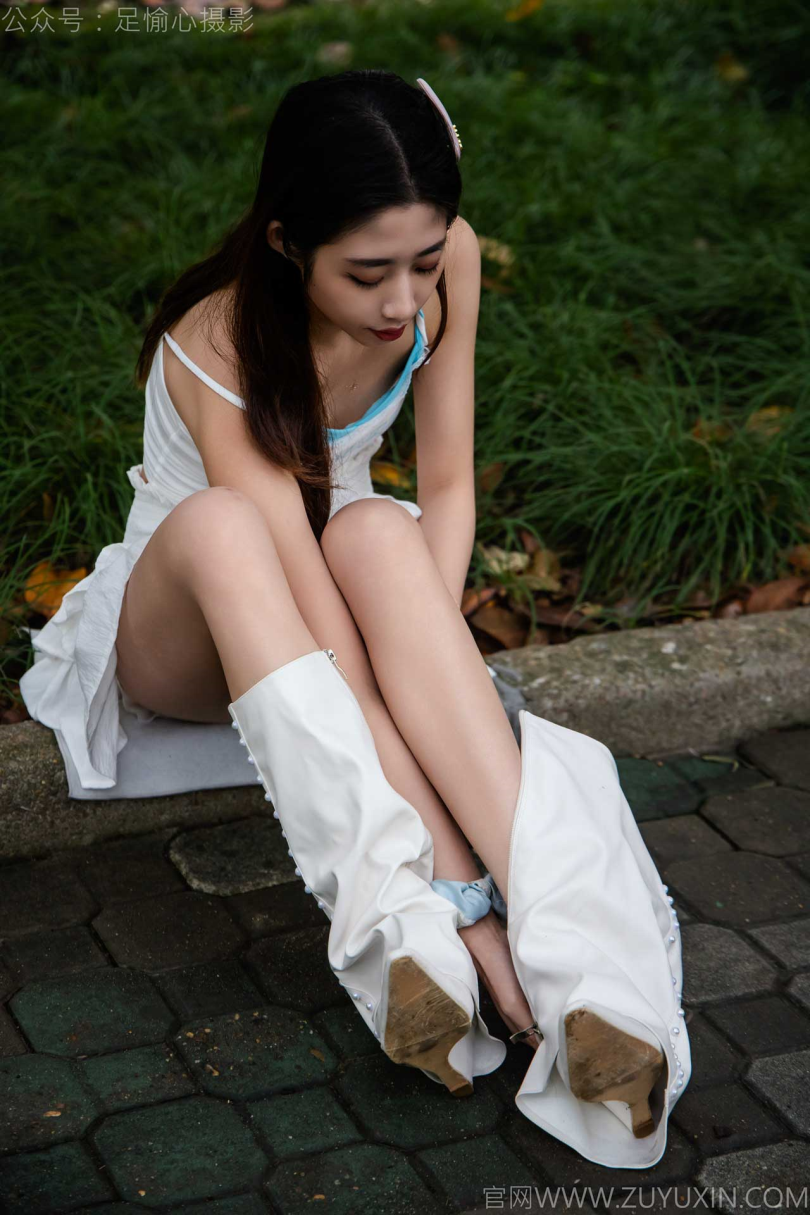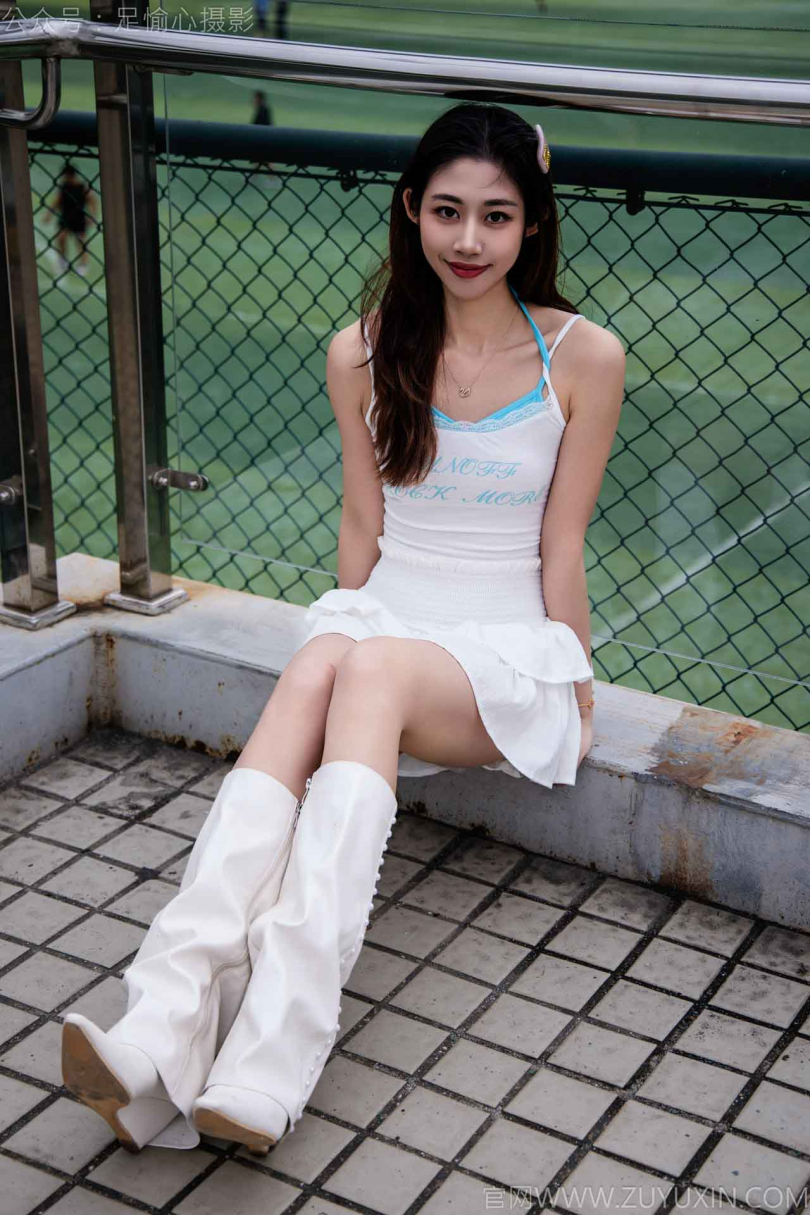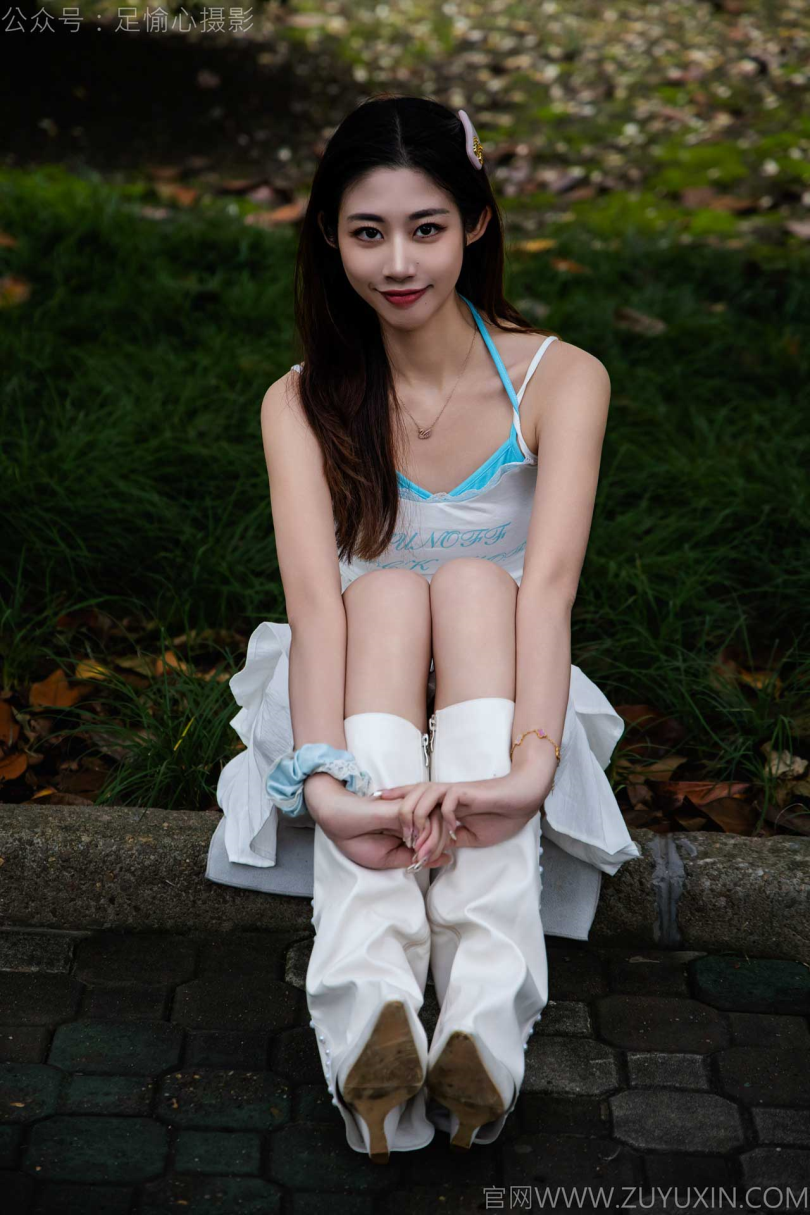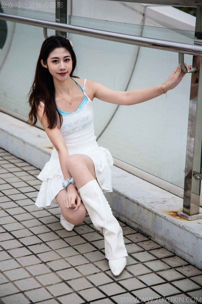 足愉心摄影第24期:模特敏敏(搭配:白色吊带、短裙、白色长靴、白棉袜、裸足)