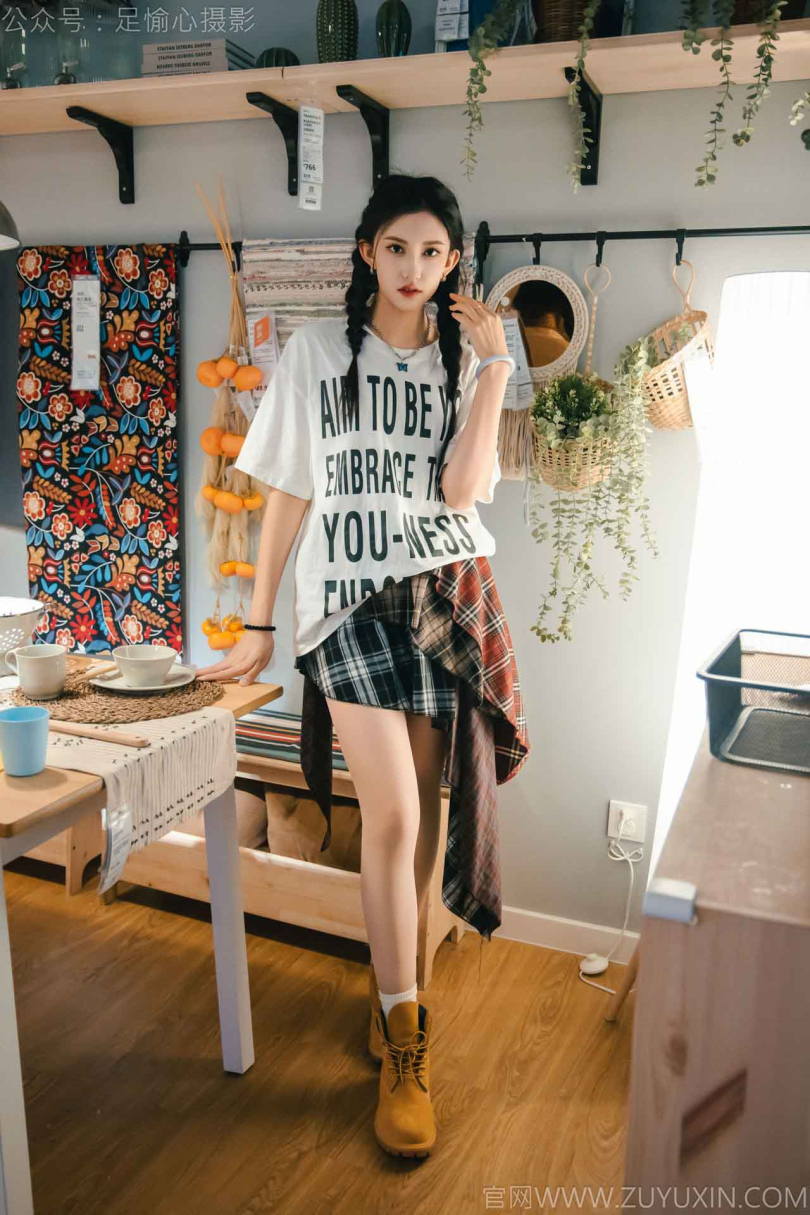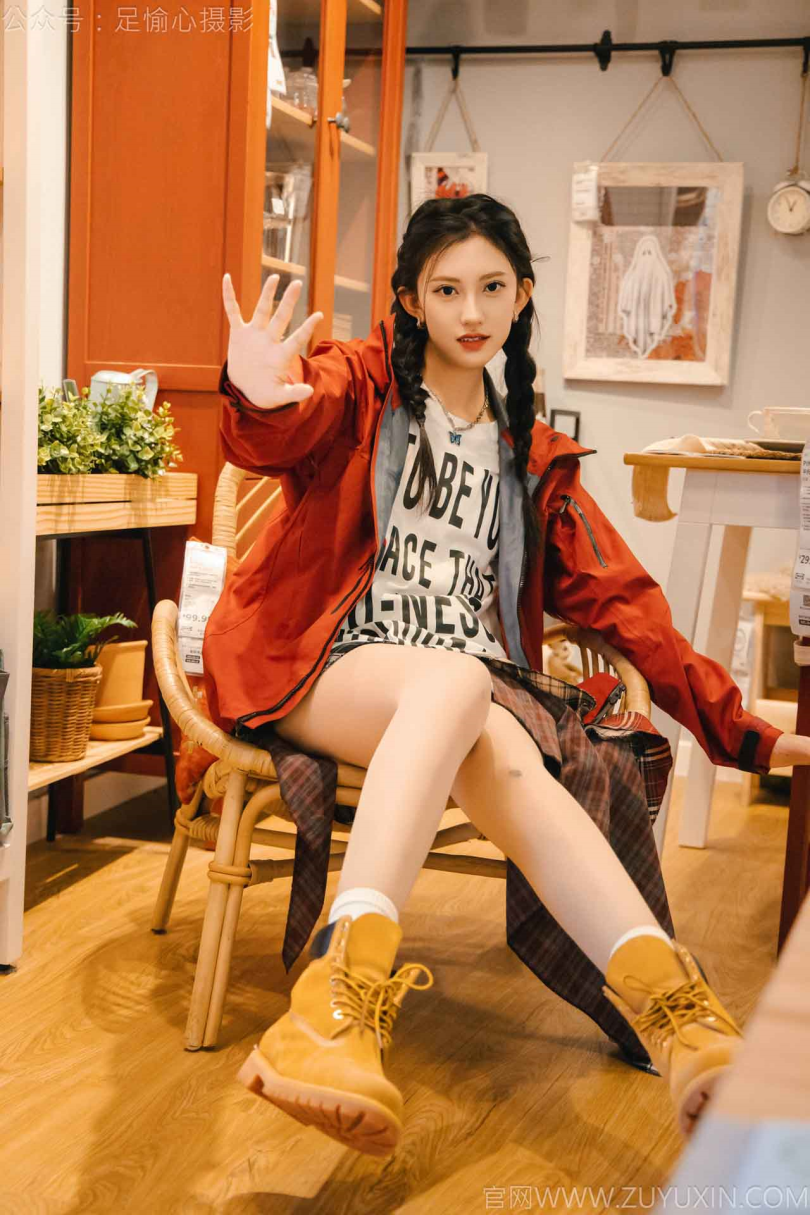 足愉心摄影第15期:模特可乐(搭配:红色夹克、白T、短裙、马丁靴、肉丝色袜、白棉袜)