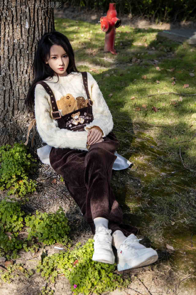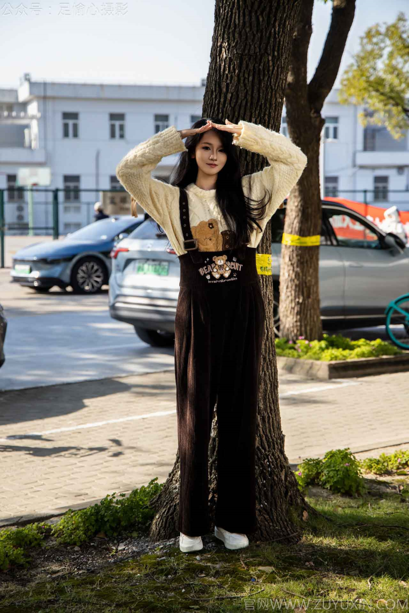 足愉心摄影第11期:模特果酱(搭配:卡通毛衣、棕色背带裤、板鞋、白色棉袜、裸足)