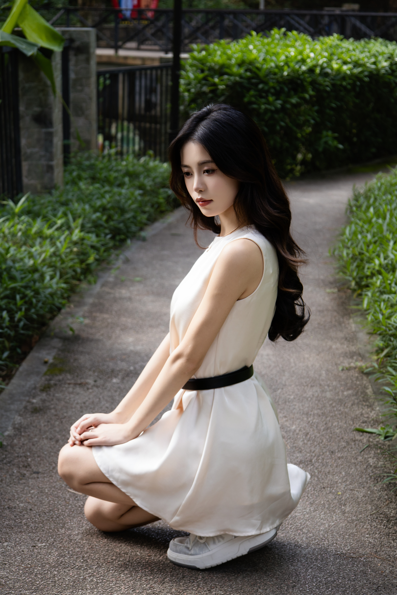 足愉心摄影第82期:模特夏沫(搭配:白色连衣裙、白色板鞋、白色棉袜、裸足)